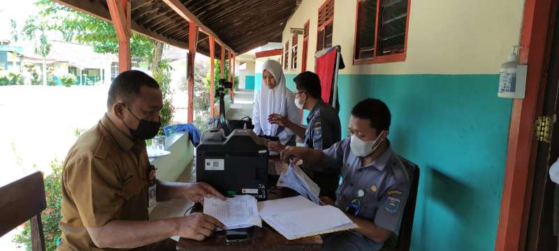 Pelaksanaan Kegiatan Pelayanan Perekaman Keliling ke sekolah-sekolah se Kota Metro serta Pelaksanaan "SIP CEPAT" Sistem Pelayanan Cetak di Tempat , di SMA Teladan 1 Kota Metro.